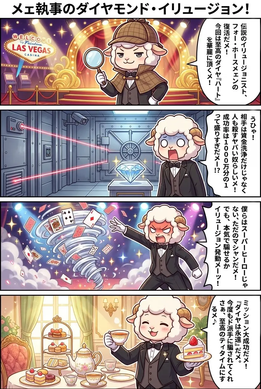 前作での☔️「雨を止めるマジック」や🃏「カードのパス回し」のような、映画ならではの視覚効果を駆使したマジックが、最新技術でどう進化しているのか。特に予告映像にある💎「ダイヤモンド強奪」の瞬間は、観客の度肝を抜く仕掛けが用意されているはずです!