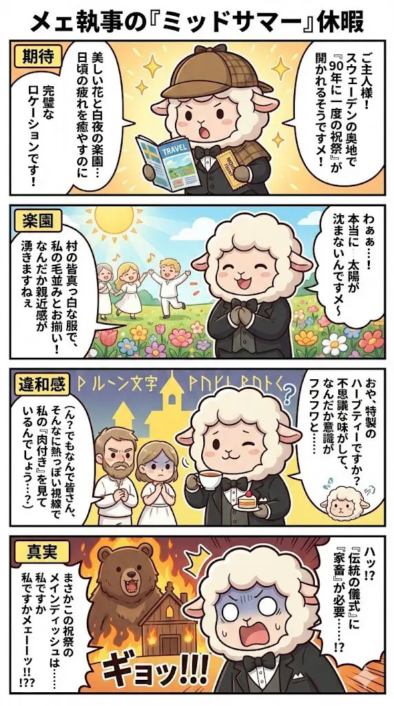 | 独創性 | 10点 | 明るい白夜を舞台にしたホラーという設定や、夏至祭というモチーフの取り上げ方が非常にユニークです。 |